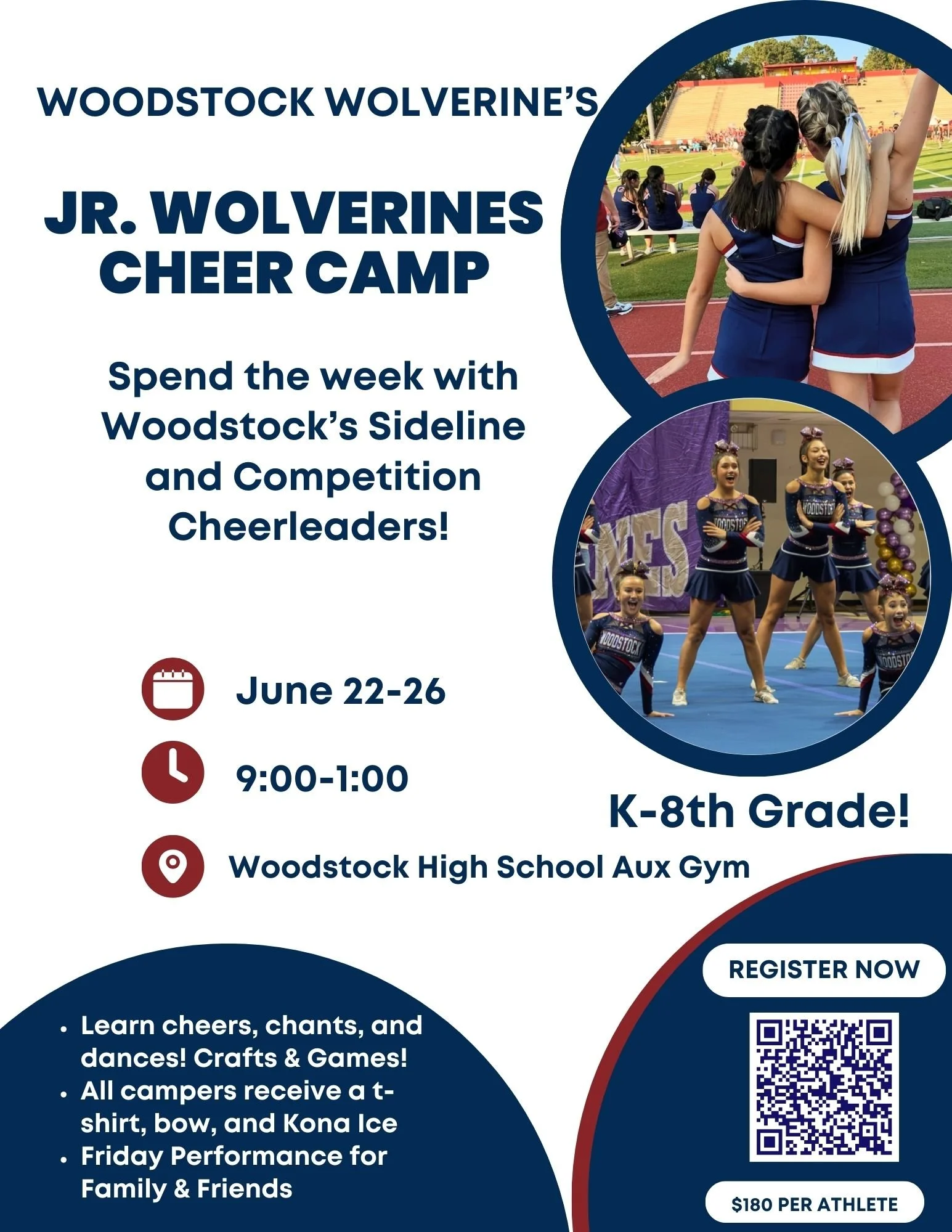 Spend the week with WHS Cheerleaders! Learn cheers, chants, dances, stunts, and jumps. We can’t wait to meet all our future Wolverine Cheerleaders!